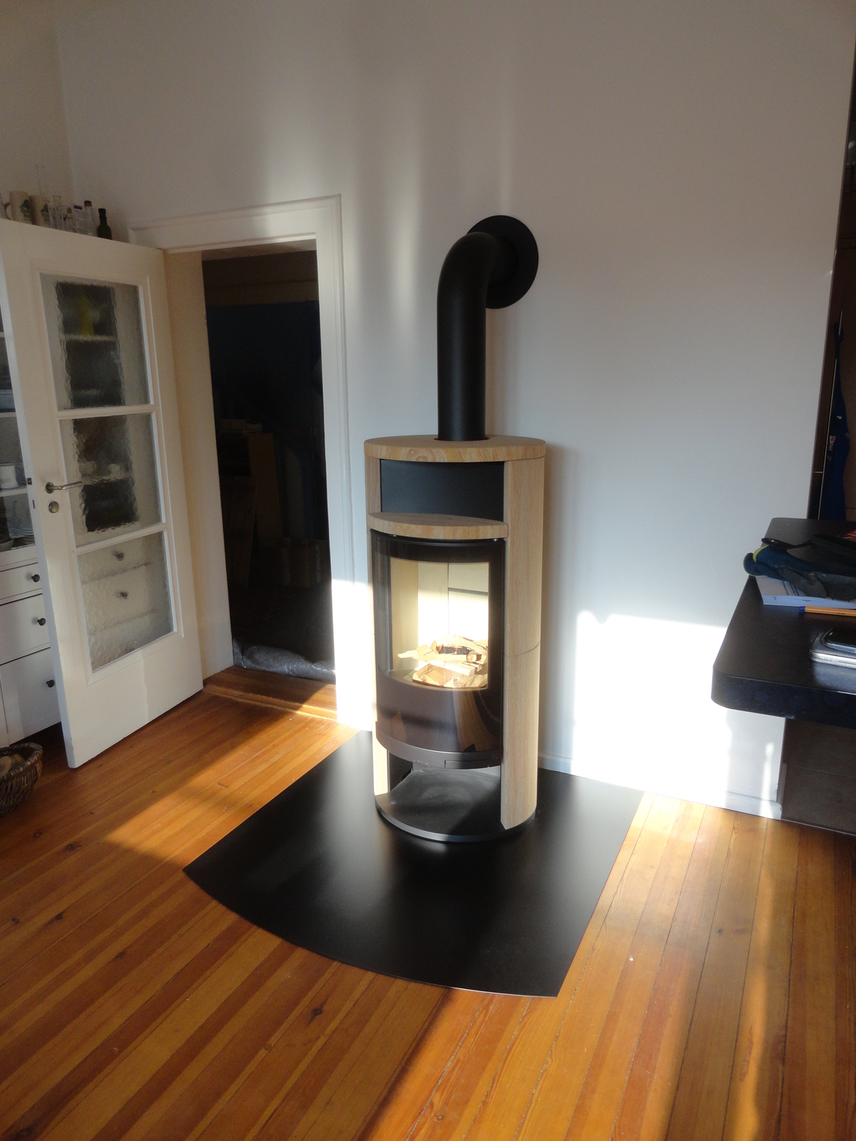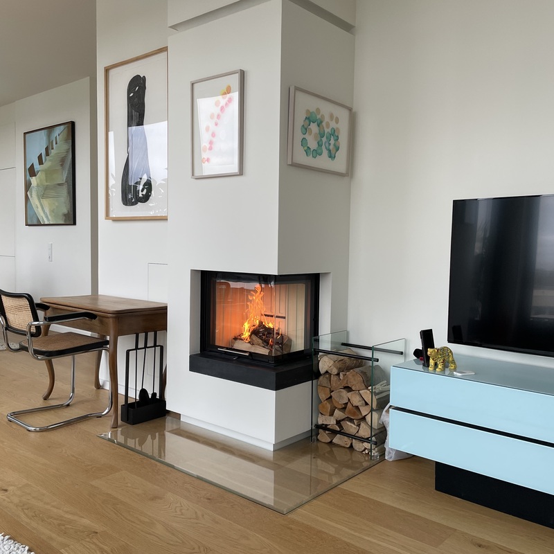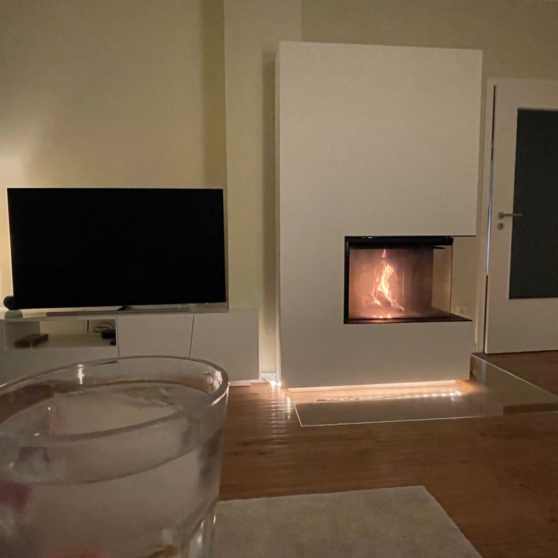 Leider lässt es sich nicht vermeiden, dass die Scheiben des Kamins verschmutzen und Ruß ansetzen. In ganz hartnäckigen Fällen hat sich ganz normales Backofenspray bewährt, mit dem man die Scheiben einsprüht und das man dann mit Küchenpapier abwischt. Anschließend mit etwas Kaminglasreiniger nachreiben und fertig ist der Kamin für das nächste Feuer.